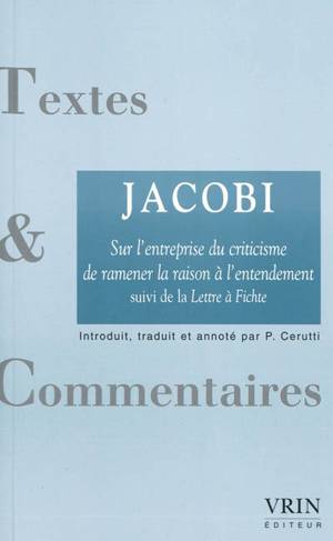 L'essai de F. H. Jacobi Sur l'entreprise du criticisme de ramener la raison à l'entendement ouvre la voie à une compréhension différente du moment idé...Savoir plus