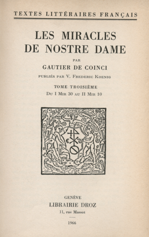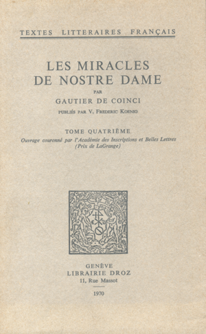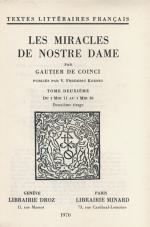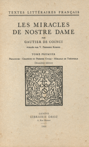 Gautier de Coinci, moine bénédictin du début du XIIIe siècle, est l'un des tout premiers (et un des plus grands) trouvère de langue d'oïl. Son oeuvre ...Savoir plus