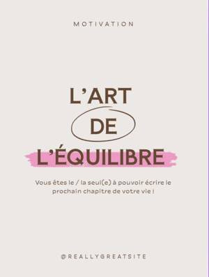 Je vends mon livret intitulé 'L'art de l'équilibre'. C'est un condensé de 10 pages conçu pour être une lecture rapide, inspirante et pratique. Ce que...Savoir plus