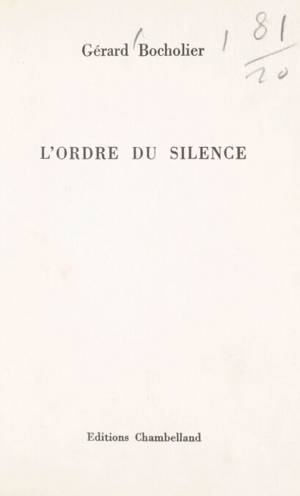 Ô vieux silence Comme tu trembles Tes mains serrant Leur poids d'argile Leur poids de sang Terre invisible Où toute nuit Se pétrifie Gérard BocholierSavoir plus