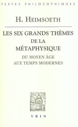 L'ouvrage de Heinz Heimsoeth, Les six grands thèmes de la métaphysique occidentale , publié pour la première fois en 1922, contient un panorama quasim...Savoir plus