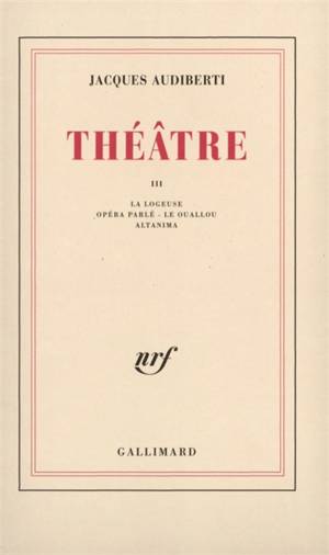 Ce troisième tome du Théâtre d'Audiberti est composé de deux pièces en trois actes : La Logeuse et Opéra parlé, d'une pièce en un acte Le Ouallou, et ...Savoir plus