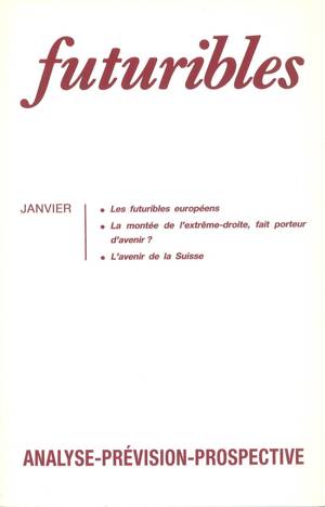 Futuribles européens LESOURNE Jacques Quel avenir pour la Suisse ? LUTZ Christian Les excédents ambigus de la » sécurité sociale » américaine ECALLE F...Savoir plus