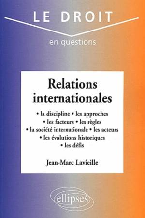 Aborde la discipline et les différentes approches des relations internationales, les facteurs et les règles de l'ordre juridique international, les di...Savoir plus