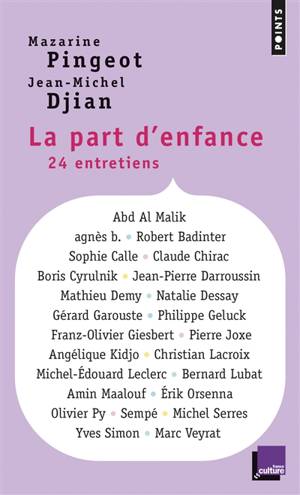 Le temps d'un été, Mazarine Pingeot et Jean-Michel Djian ont mené des entretiens sur France Culture dans une émission intitulée «La part d'enfance». D...Savoir plus