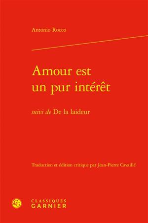 Amour est un pur intérêt suivi de De la laideur L'amour pur, dégagé de route convoitise, n'existe pas ; l'amour n'est au contraire qu'un pur intérêt. ...Savoir plus
