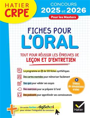 Plus de 120 fiches synthétisant les notions essentielles à maîtriser pour l'épreuve d'exposé ou de leçon (français, maths) et celle d'entretien (EPS, ...Savoir plus