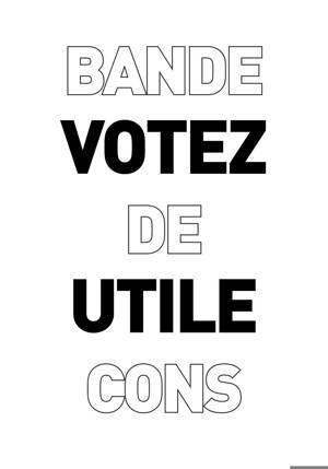 Une collection de cartes détournant les slogans politiques de la campagne de l'élection présidentielle de 2017. Le texte des slogans est imprimé en no...Savoir plus
