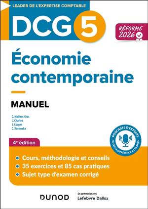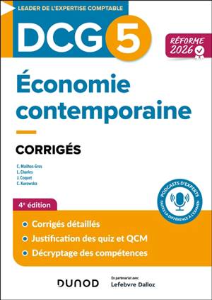 DCG 5 Économie contemporaine Complément indispensable du manuel, cet ouvrage propose les corrigés détaillés de : Tous les quiz, QCM, exercices et appl...Savoir plus
