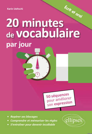 20 minutes de vocabulaire par jour Ce livre repose sur le pari qu'avoir des difficultés pour s'exprimer et trouver le mot juste n'est ni une fatalité,...Savoir plus