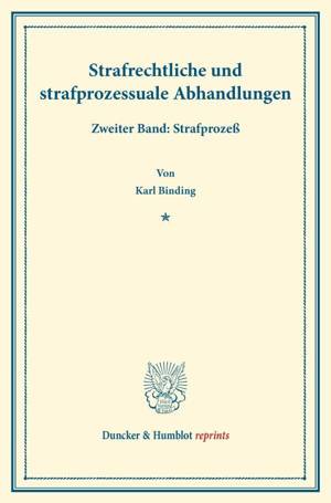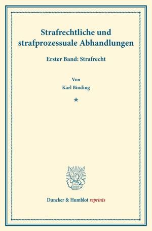 In zwei Bänden legt Karl Binding im Jahr 1915 sein Werk "Strafrechtliche und strafprozessuale Abhandlungen" vor und begründet dies wie folgt: "Das Ver...Savoir plus