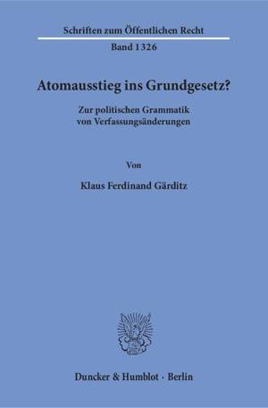 Die vorliegende Studie geht der Frage nach, ob und ggf. inwiefern der einfachgesetzlich erfolgte Atomausstieg im Grundgesetz abgesichert werden könnte...Savoir plus