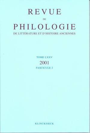 Au sommaire notamment : Les porteurs de Vornamengentilizia à Pérouse (C. Berrendonner) ; Phrynichos dans les scolies d'Aristophane (M. Chantry) ; Hann...Savoir plus