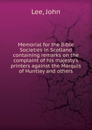 Memorial for the Bible Societies in Scotland containing remarks on the complaint of his majesty's printers against the Marquis of Huntley and others T...Savoir plus