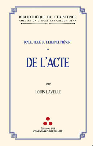 En 1937, Louis Lavelle, philosophe et professeur au Collège de France, fait paraître l’un de ses plus beaux ouvrages, De L’acte . Ce riche essai philo...Savoir plus
