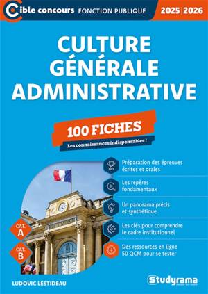 Culture générale administrative 100 fiches Un outil indispensable Cet ouvrage s'adresse aux candidats préparant des concours administratifs (catégorie...Savoir plus