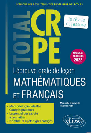 Nouveau concours 2022 La collection « Total CRPE » propose des ouvrages tout-en-un pour se préparer aux différentes épreuves du nouveau concours CRPE,...Savoir plus