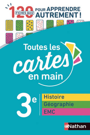 3 e Histoire Géographie EMC Toutes les cartes en main Pour réviser seul ou à plusieurs ! 120 fiches quiz ¤ Mémoriser tous les points du programme pour...Savoir plus