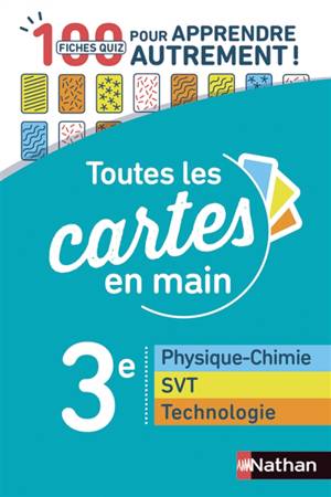 3 e Physique-Chimie SVT Technologie Toutes les cartes en main Pour réviser seul ou à plusieurs ! 100 fiches quiz ¤ Mémoriser tous les points du progra...Savoir plus
