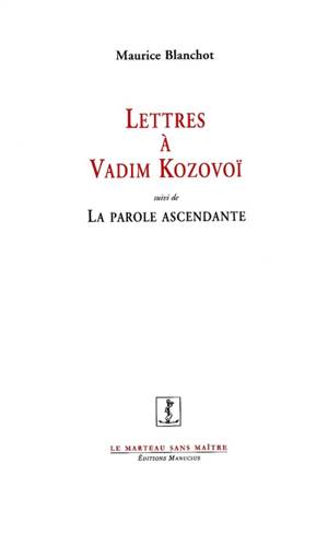 Correspondance Maurice Blanchot - Vadim Kozovoï présentée par Michel Deguy, Irina Emélienova-Kozovoï et Denis Aucouturier Olivier Apert, Crises, vers ...Savoir plus