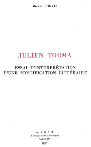 Essai consacré à un cas de mystification littéraire : l'invention en 1952, par le Collège de Pataphysique, d'un écrivain nommé Julien Torma.Savoir plus