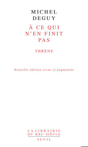 À ce qui n'en finit pas Le thrène est un chant funèbre accompagné de danses. Te survivre ne va pas de soi. Je ne crois à aucune survie hors celle qui ...Savoir plus