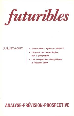 Editorial Futurs possibles et souhaitables JOUVENEL Hugues (de) Etats-Unis : l’emploi à l’horizon 2008 GRANRUT Charles (du) Prospective de l’Afrique s...Savoir plus