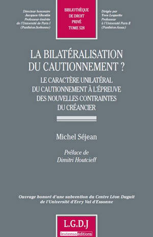 Bibliothèque de Droit Privé Tome 528 Y a-t-il un phénomène de « bilatéralisation du cautionnement » ? Depuis une trentaine d'années, le bénéficiaire d...Savoir plus