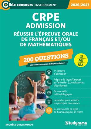 CRPE - Admission Réussir l'épreuve orale de français et/ou de mathématiques 200 questions Un ouvrage complet Cet ouvrage est destiné à tous les candid...Savoir plus