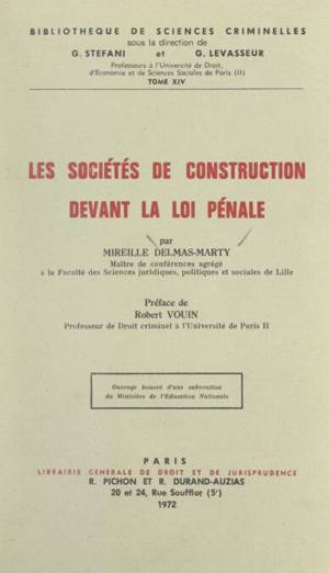 Anthologie du Droit Les sociétés de construction devant la loi pénale Mireille Delmas-Marty a soutenu sa thèse de doctorat portant sur Les sociétés de...Savoir plus