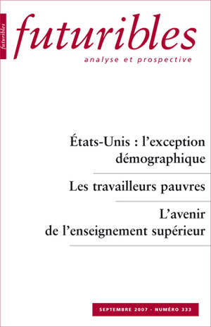 Au sommaire notamment : Dangers, projections ! (H. de Jouvenel) ; Les travailleurs pauvres en France, de la pauvreté active à la solidarité active ? (...Savoir plus