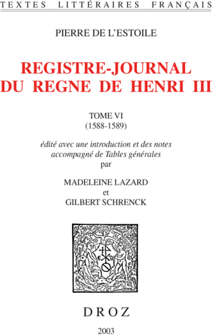 Sixième tome du Journal de Pierre de L’Estoile, qui constitue, de l’avis général, le document le plus important et le plus curieux pour la connaissanc...Savoir plus