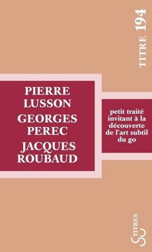 An introduction to the ancient Japanese strategy game of Go by Oulipo members Pierre Lusson, Georges Perec and Jacques Roubaud Written by a mathematic...Savoir plus