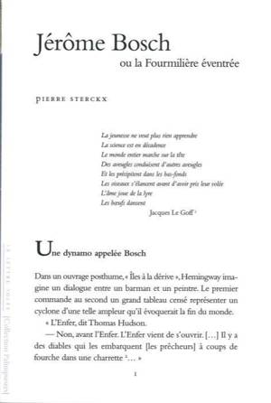 Jérôme Bosch ou la Fourmilière éventrée La peinture de Jérôme Bosch fascine tous les publics. Née autour de 1500, à la confluence d'un Moyen Âge morib...Savoir plus