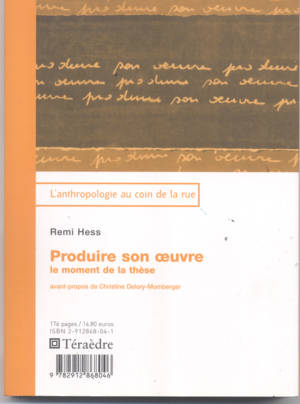 L'Université se produit et se reproduit par l'écrit: le moment du mémoire ou de la thèse est un espace-temps qui permet à l'étudiant de se construire ...Savoir plus