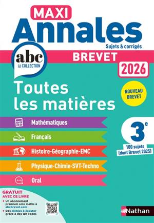 Des sujets pour préparer les épreuves du brevet dans toutes les matières. Avec une analyse de chaque sujet, des corrigés détaillés et des ressources s...Savoir plus