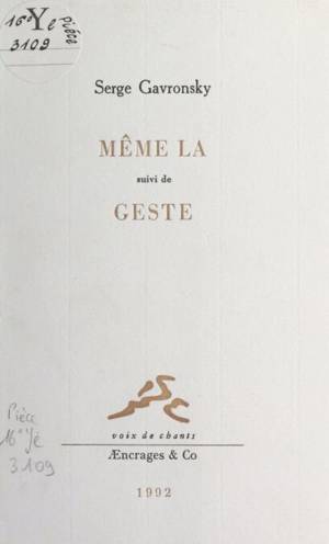 C’est par une suite de déplacements logiques que le discours de Serge Gavronsky nous rappelle sans cesse la vertu du texte en état de devenir. Cela su...Savoir plus