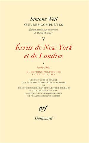 Écrits de New York et de Londres Volume 1 Questions politiques et religieuses Ce volume reproduit les textes composés par Simone Weil dans la dernière...Savoir plus