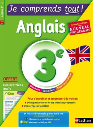 Je comprends tout ! Grammaire Vocabulaire Entrainement à l'oral Tout le programme d'Anglais 3 e à la portée de l'élève et des parents, pour une année ...Savoir plus