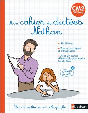 Mon cahier de dictées Nathan CE2 36 dictées pour s'améliorer en orthographe au CM2 Une démarche progressive et efficace Des dictées classées par notio...Savoir plus