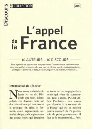 L'appel de la France 10 auteurs - 10 discours Sont ici collectés les dix Discours publiés sur des thématiques qui concernent le politique. Ils forment...Savoir plus