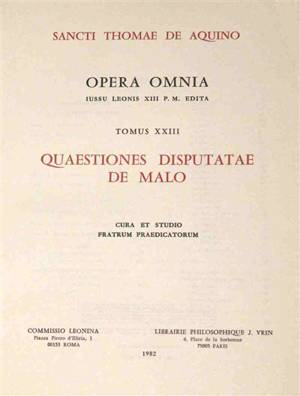 Les quinze premières questions sur le mal, très probablement disputées à Paris vers 1270, traitent de la nature, des causes et des aspects divers du m...Savoir plus