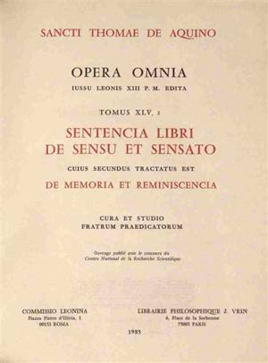 L'édition donne le texte critique des commentaires de saint Thomas sur les traités psychologiques d'Aristote ainsi que celui des traductions latines d...Savoir plus