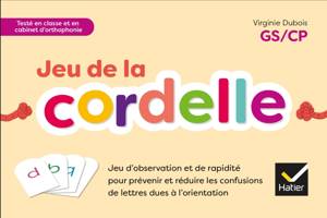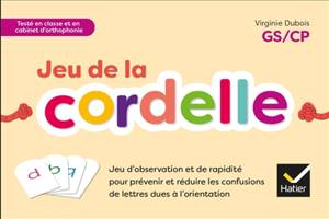 2 lettres sont identiques ? Vite ! Attrapez la cordelle ! Le jeu de la Cordelle 2 joueurs Lettres : apbdq mnu ft éè Contenu : 1 cordelle, 85 cartes en...Savoir plus