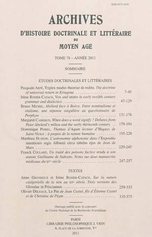 Au sommaire notamment : Fides sive credulitas : le problème de l'assentiment chez Abélard, entre logique et psychologie (C. Grellard) ; Pierre de Jean...Savoir plus