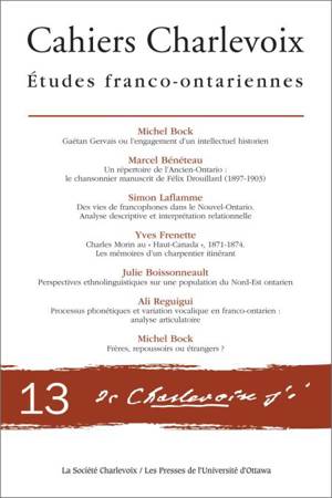 Depuis 1995, la Société Charlevoix publie les Cahiers Charlevoix. Etudes franco-ontariennes, un collectif exclusivement dévolu à la diffusion des trav...Savoir plus