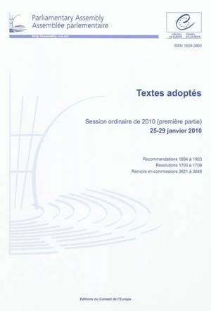 L'Assemblée parlementaire du Conseil de l'Europe publie un volume de textes adoptés lors de chacune de ses quatre parties de session et des réunions d...Savoir plus