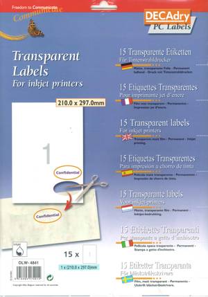 Decadry propose une boîte de 15 étiquettes transparentes polyester jet d'encre multi-usage. Parfait pour étiquetter vos bouquins, carnets ou encore vo...Savoir plus