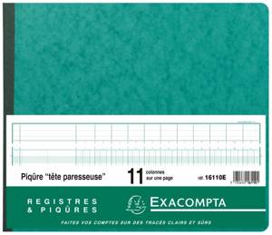Piqûre 27x32cm à tête paresseuse 11 colonnes sur 1 page - 28 lignes - 80 pages La clarté des tracés Exacompta et leur qualité d'impression avec une en...Savoir plus