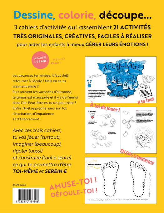 Un cahier pour se préparer à affronter la rentrée, un cahier pour les vacances de la Toussaint, un cahier pour attendre Noël ! Des activités toutes simples à réaliser pour affronter les émotions de ces moments particuliers. Et pour s'amuser en famille !
